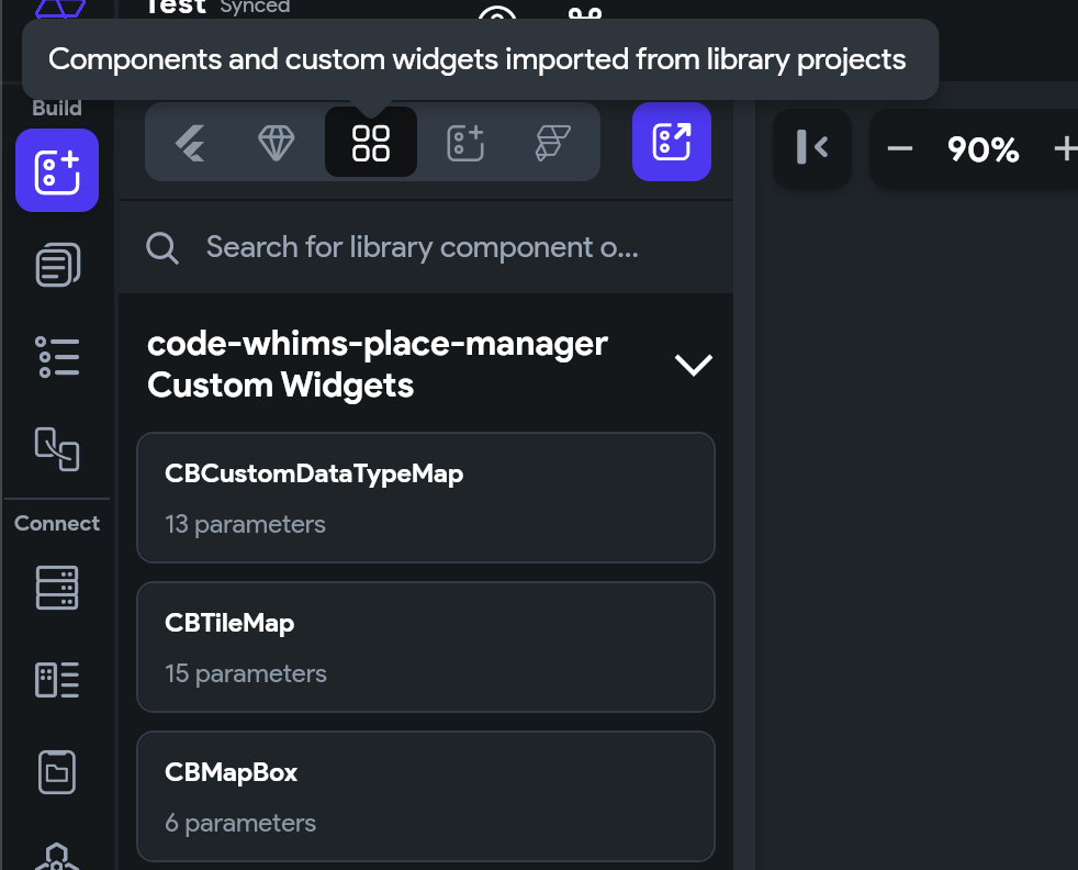 To add the custom maps to your page choose the first icon under the Build menu to the far left of Flutter Flow, the Widget Pallete. Then choose the icon with four squares. Drag the widget you want on the screen.